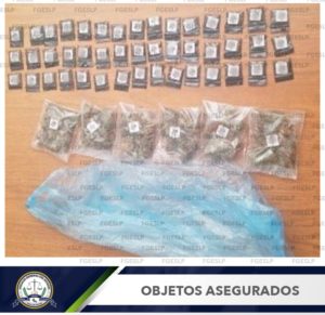 SGS. – La Policía de Investigación (PDI) de la Fiscalía General del Estado de San Luis Potosí (FGESLP) realizó la detención en flagrancia de una mujer de 25 años de edad, quien transitaba en la vía pública en posesión de varias dosis de droga en el municipio de Soledad de graciano Sánchez.