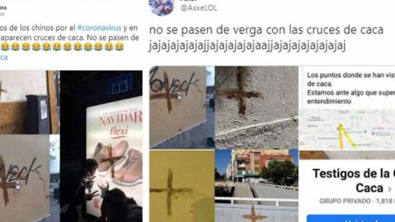 Nos quejamos de los chinos por el #coronavirus y en Guadalajara aparecen cruces de caca. No se pasen de verga