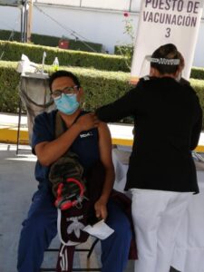 El martes por la tarde el Personal de los Servicios de Salud de San Luis Potosí que se encuentra apoyando en la atención médica de la pandemia en la CDMX, recibió este martes la primera dosis de la vacuna contra el COVID-19.