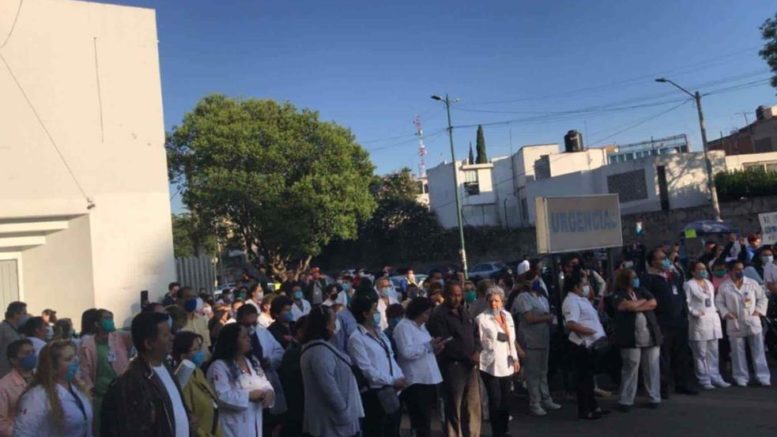 Ante la falta de insumos, esta mañana personal médicos del Hospital Regional 1° de Octubre del ISSSTE realiza una manifestación