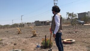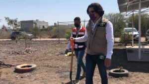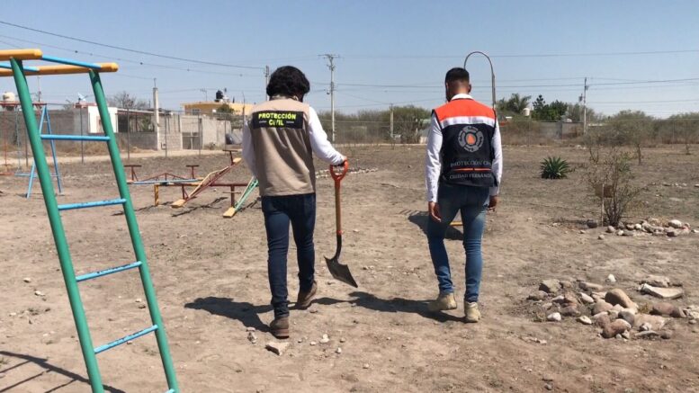 Personal de la dirección de Protección Civil de Ciudad Fernández realizó una inspección y valoración del terreno donde se encuentra el jardín de niños Frida Kahlo en el ejido los Llanitos para exterminar una plaga de topos que está dañando gravemente su jardín.