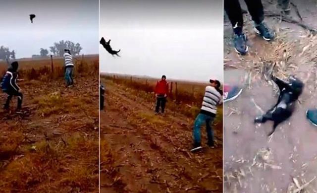 Fue la cuenta Prensa Animal quien compartió las fotografías. En ellas se logra ver a al menos tres sujetos lanzando y golpeando a un perro, al perecer ya sin vida.