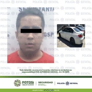 Por último, en Avenida Carranza y calle Humboldt, de la colonia Del Valle, fue detenido Jonathan R., de 25 años de edad, después de que los agentes Estatales le aseguraran un vehículo marca BMW, tipo 320, modelo 2013, color blanco, con placas de esta entidad. El automotor cuenta con reporte de robo del 02 de octubre, del presente año, en la colonia Lomas del Tecnológico.