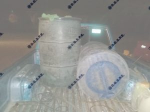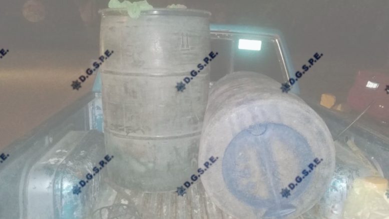 Al efectuar la revisión, se encontraron en el área de carga, con dos tambos de plástico conteniendo gasolina en su interior, con una capacidad de 200 litros cada uno, procediendo a la detención de quien se identificó como Ernesto R., de 21 años de edad.