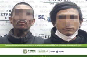 SAN LUIS POTOSÍ, S.L.P.- En respuesta a un reporte recibido en el Sistema de Emergencia 9-1-1, Policías Estatales lograron la detención de dos hombres por el presunto delito de robo a una empresa.