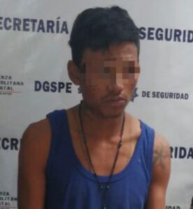 En la calle de Oaxaca y Guanajuato ente Nuevo León y México en la colonia República, se concreta el arresto de Fabián R. de 21 años de edad a quien se le asegura: