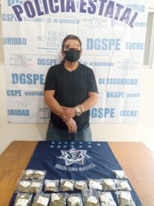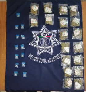 En el lugar los agentes Estatales detuvieron a Juvenal de 47 años de edad, a quien le aseguraron 18 bolsas con una hierba verde y seca con las características físicas de la marihuana, con un peso aproximado de 140 gramos, así como 13 dosis de un polvo blanco granulado con las características de la droga sintética conocida como “cristal” con un peso aproximado de 6.57 Gramos.