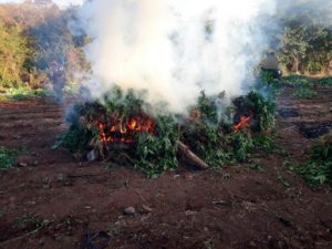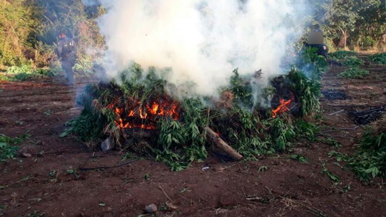 Resultado de los trabajos que realiza la Policía Federal de México para combatir de raíz las causas de la violencia y la delincuencia, la División de Fuerzas Federales erradicó 35 mil 910 plantas de marihuana en Mazatlán, Sinaloa.