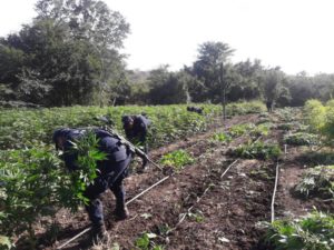 Los plantíos, con una extensión de 35 mil 910 metros cuadrados, se encontraban en la localidad de Escamillas, en el municipio de Mazatlán; se continuarán con las investigaciones para ubicar a los responsables