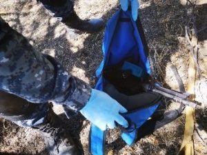 En el interior de una mochila se encontraron más de 30 envoltorios con una sustancia similar a la droga conocida como cristal, un envoltorio de posible marihuana, además 01 arma, 01 cargador y 29 cartuchos.