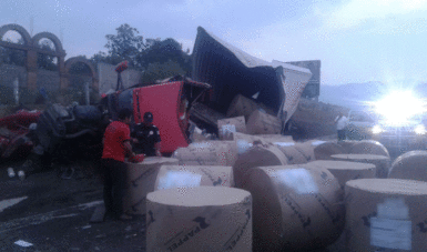 En el kilómetro 37, cuando el tráiler alcanzaba una velocidad aproximada de 160 kilómetros por hora, los policías federales indicaron al operador que saliera del camino hacia la rampa para frenado de emergencia, impactándose contra el montículo de tierra, por lo que volcó y parte de la carga fue expulsada al arroyo vehicular.