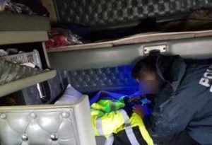 Los policías federales detectaron ruidos extraños de la cabina, por lo que al ampliar la revisión, encontraron al verdadero conductor privado de su libertad.