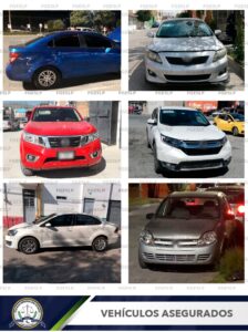 SLP. – Fueron asegurados 13 vehículos con reporte de robo vigente, por agentes de la Policía de Investigación (PDI) en diferentes colonias de la ciudad Capital, informó la Fiscalía General del Estado de San Luis Potosí (FGESLP).