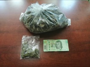Al hacer una inspección, en el interior del automóvil fue asegurada una bolsa con hierba verde y seca, características físicas de la marihuana, misma que se localizó entre los asientos del automotor. Los presuntos intentaron evadir la detención mediante el presunto delito de cohecho, ofreciendo 200 pesos en efectivo a las autoridades.