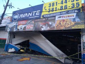 Los hechos se registraron la madrugada de hoy en el bulevar México-Laredo cerca del Distribuidor Vial, frente a la llantera Avante, la unidad se impactó de frente contra un poste de la CFE y al rebotar dañó la cortina de la llantera dos elementos de seguridad están hospitalizados .