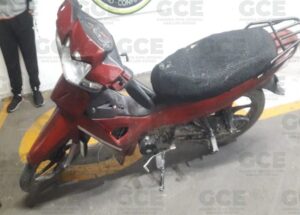Tras consultar el estatus de la unidad en la base de datos de Plataforma México, el Operador Interviniente del Centro de Control, Comando, Comunicaciones y Cómputo (C-4), refirió a los Estatales que la motocicleta marca Italika, modelo 2020, con placa de esta entidad, color vino, contaba con reporte de robo el 17 de junio de 2022, en la colonia Nueva Creación.