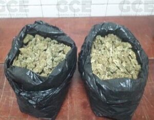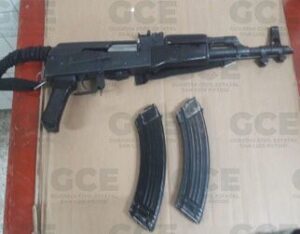 Al llevar a cabo una inspección, al presunto se le aseguraron dos bolsas que contenían aproximadamente dos kilos con 426 gramos de una hierba verde y seca con las propiedades físicas de la marihuana, además se le aseguró un arma de fuego, tipo fusil, calibre 7.62, con dos cargadores, uno de ellos abastecido con 30 cartuchos útiles y el otro con 15, también se le aseguró un arma de fuego corta, calibre 9 mm., abastecida con 15 cartuchos útiles.