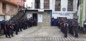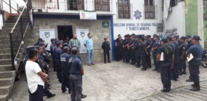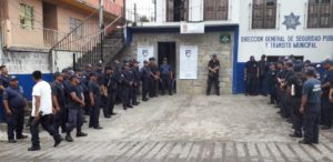 Cerca de 65 elementos de la policía Municipal se manifestaron esta mañana en el exterior de la comandancia Municipal, en donde los elementos refirieron que el director se la policía municipal Asencion de la Cruz no les respeta turnos y los humilla a cada que puede, “no, nos da un trato digno como personas”, por lo que exigen la destitución de su cargo.
