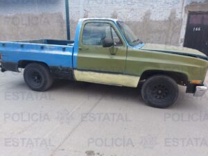 Durante los patrullajes realizados en Privada de la Pasadita y Segunda Norte en la colonia Tierra Blanca, se aseguró una camioneta Chevrolet, tipo pick up, color azul con verde, modelo 1988, con placas de esta entidad. La unidad contaba con reporte de robo el 04 de marzo de 2022, en la colonia San Leonel.