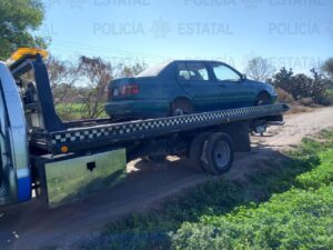 Dentro de las acciones de búsqueda en Camino a Cerro de San Pedro, perteneciente a la comunidad Planta del Carmen, los agentes Estatales aseguraron un Volkswagen, tipo Jetta, modelo 1995, color verde, contaba con reporte de robo del 06 de marzo de 2022, en el Fraccionamiento Hacienda de los Morales, en el Municipio de Soledad de Graciano Sánchez.