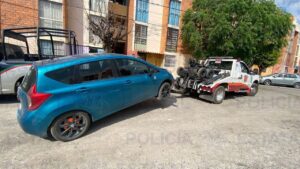 En el mismo Municipio, durante los patrullajes en la calle San Francisco, se aseguró un Nissan, tipo Note, color azul, modelo 2014, con placas de esta entidad. La unidad contaba con reporte de robo del 05 de marzo de 2022. En su interior y exterior se aprecian manchas hemáticas, por ello fue puesto a disposición de la autoridad competente para las averiguaciones conducentes.