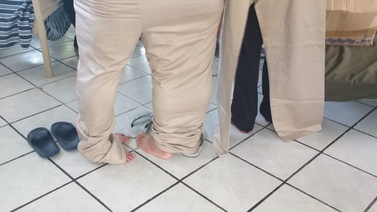 Oficiales de la Policía federal que apoyan en el “Operativo Caminante” reciben uniformes que no les quedan.