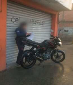 Cuando intentaron huir, los agentes municipales lograron darles alcance apenas unos metros adelante; al entrevistarlos notaron que el encendido de la motocicleta marca Pulsar 160 de color negro tenía huellas de haber sido violentada, por lo que consultaron el estatus legal del vehículo en la Plataforma México, el resultado que arrojó la búsqueda fue que contaba con reporte de robo vigente sin violencia del día 26 de enero del año en curso, en la colonia El Paseo de la capital del estado.