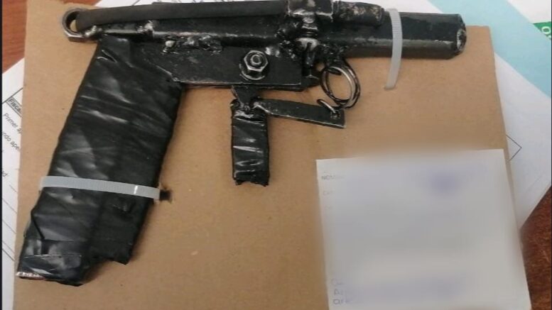 SOLEDAD DE GRACIANO SÁNCHEZ, SLP., 1 de marzo de 2022.- Oficiales de la Dirección General de Seguridad Pública Municipal (DGSPM) de Soledad de Graciano Sánchez detuvieron a un hombre por robo a comercio, además de que se le encontró un arma artesanal conocida como cachimba, misma que presuntamente utilizaba para cometer delitos en la colonia San Antonio.