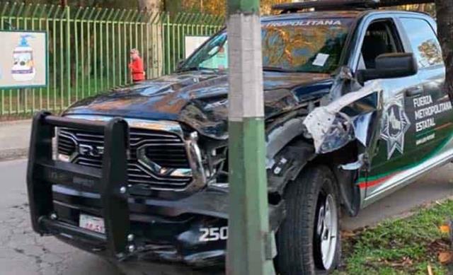 Una patrulla de la Fuerza Metropolitana sufrió este viernes un accidente a un costado del parque de Morales.
