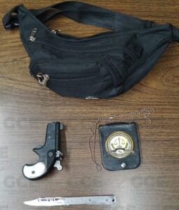 • Tras mostrar una actitud sospechosa ante la cercanía de los agentes policiacos, se le aseguró un arma deportiva confeccionada para detonar cartuchos calibre .22, además de manifestar ser supuestamente miembro de la Policía de Investigación del Estado.