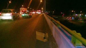 Un taxista y sus dos pasajeros resultaron lesionados al sufrir un accidente cuando el conductor trató de esquivar unas cajas tiradas en los carriles centrales de la cima del puente obispado y eje 114 de la carretera mexico sur.