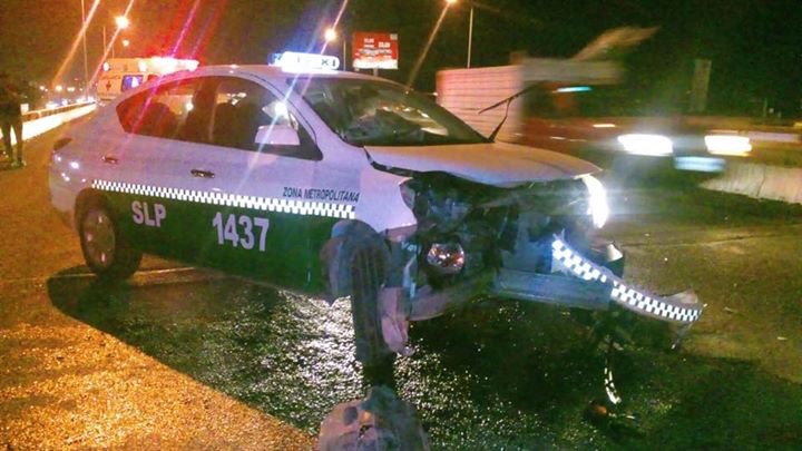 Repirtan indican que el conductor de un taxi trato de esquivar los obstáculos lo que provocó que perdiera el control de la unidad y se estampara contra el muro .