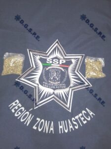 En el municipio de Ébano, al realizar un recorrido de seguridad sobre las calles Tamuín y Tamazunchale, de la colonia Del Valle, tuvieron contacto con un masculino que se trasladaba a bordo de una motocicleta marca Italika, modelo 2013, color negro con gris, quien al ver las unidades policiales tomo una actitud evasiva, por lo cual le marcaron el alto para una inspección de seguridad, asegurándole dos bolsas de plástico conteniendo una hierba verde y seca con propiedades físicas de la marihuana. Por ello fue detenido José O., de 29 años de edad.