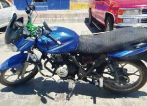 Por último, en el Municipio de Soledad de Graciano Sánchez, durante los patrullajes sobre Avenida Rivas Guillén y la carretera 70 en la colonia Genovevo Rivas Guillén, los elementos Estatales detuvieron a Eduardo de 31 años de edad después de asegurarle un pica hielo de aproximadamente 20 centímetros. También se le aseguró una motocicleta marca Bajaj, modelo 2018, color azul, con placa de identificación de la Ciudad de México.