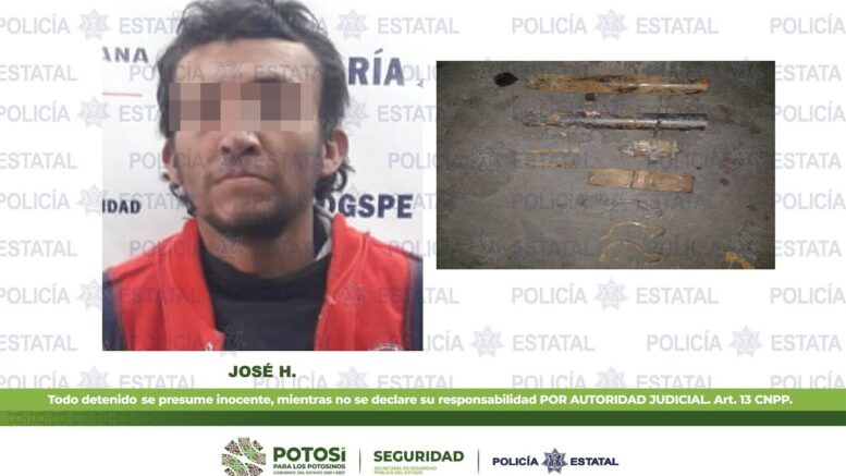 Los hechos fueron en las vías México-Laredo y el Boulevard Españita, lugar en donde los agentes Estatales detuvieron a José H., de 35 años de edad, a quien le aseguraron dos tubos metálicos, clavos y diversas piezas. El afectado solicitó del apoyo de las autoridades para proceder legalmente en contra del hombre.