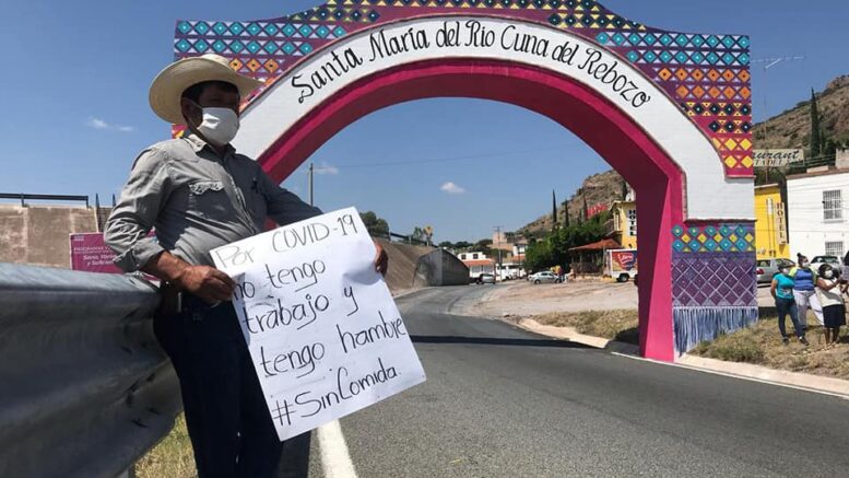 En Santa María Del Río uno de los municipios que vive del comercio y de la venta de la prenda típica del estado “el reboso” los potosinos salieron a manifestarse y pedir apoyo al gobierno del estado.