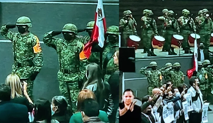 A pesar de que su participación se limitó a tener acto de presencia, el arribo de militares fue condenado por la oposición (Foto: Cuartoscuro)Cabe destacar que la participación de los uniformados se limitó a la música durante la ceremonia de inicio de sesiones, misma que dio pie al inicio de una discusión parlamentaria respecto al caso del gobierno de Cuitláhuac García en Veracruz y sus posibles actos de abuso de poder y violación de los derechos humanos.