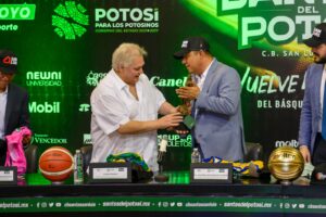 Sergio Ganem Velázquez, presidente de la LNBP mencionó que es un día muy especial por el regreso de uno de los activos sociales más importantes de San Luis Potosí, el equipo Santos del Potosí, por lo que agradeció la voluntad del Gobernador de retornar esta actividad de tradición, con una fórmula ganadora en la que participan personas empresarias, empresas y autoridades, “Gracias Ricardo por regresarle a San Luis las cosas que tienen valor”, expresó.