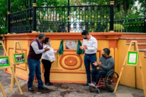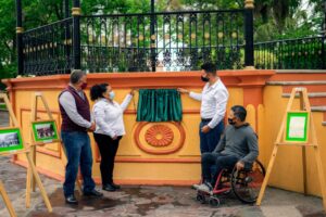 Finalmente se llevó a cabo la develación de una placa conmemorativa a los 115 años de la edificación del kiosko, cuya construcción fue con el propósito de conmemorar el Centenario del Natalicio del Benemérito de las Américas Lic. Benito Juárez García.