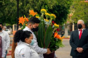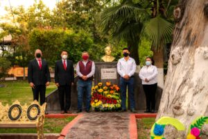 En su discurso oficial, el primer edil mencionó el hecho de que, a 215 años de su nacimiento, el pensamiento de Benito Juárez sigue vigente, porque sigue siendo un símbolo de respeto y de incansable lucha por la paz. Sigue siendo ejemplo de entrega y convicción para salir adelante.