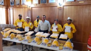 Presidente Arnulfo Urbiola entregó equipo de protección a brigadistas de la comunidad El Nacimiento en Rioverde