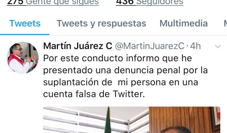 Finalmente enfatizó que la cuenta oficial, con información verdadera mediante la cual mantiene comunicación con la militancia y la ciudadanía, es @MartinJuarezC bajo el nombre Martín Juárez Córdova, donde se encuentra información real generada de manera personal, relacionada con la actividad de partido que se realiza en PRI de San Luis Potosí.