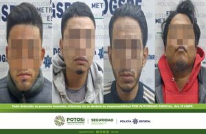 SAN LUIS POTOSÍ, SLP.- Gracias a la atención inmediata de un reporte recibido en la Línea de Emergencia 9-1-1, Plicías Estatales detuvieron a tres hombres por presuntmente asaltar una tienda de conveniencia, además se les aseguró una motocicleta robada así como varias dosis de “cristal” y marihuana.