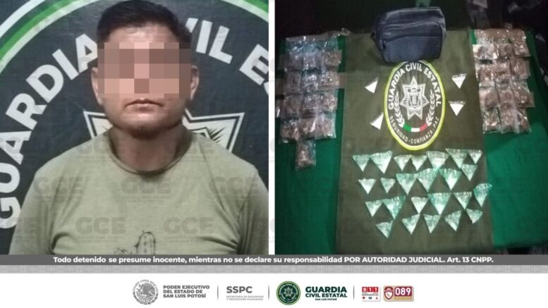 Ciudad Valles, S.L.P.- Derivado de los operativos para el combate sin tregua a la delincuencia y al narcomenudeo, oficiales de la Guardia Civil Estatal (GCE) detuvieron a un presunto vendedor de droga en la región Huasteca.