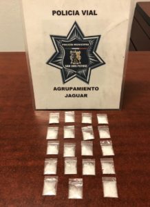 La inspección arrojó que entre su ropa llevaba consigo 19 bolsas de plástico transparente con un contenido granulado, color blanco con las propiedades físicas de la droga conocida como cristal.