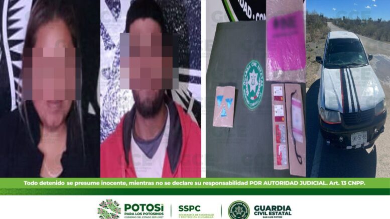 Real de Catorce, S.L.P.- Gracias a una denuncia ciudadana atendida a través del Número 089, oficiales de Guardia Civil Estatal (GCE) detuvieron a un hombre y una mujer, por los probables delitos de usurpación de funciones y posesión de droga: los presuntos pretendían solicitar dinero a cambio de no retirarles su Pensión de Bienestar.