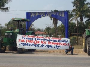 Carretera Tampico – ValleS , después de la nula respuesta del gobierno federal de apoyar el subsidio para sus siembras .