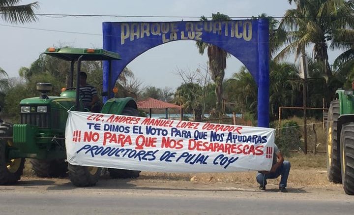 Los productores visiblemente molestos dijeron que la gente del campo estamos unidos y esperemos no habernos equivocado al votar por Andrés Manuel López Obrador, por que la verdad es que el campo está peor cada día qué pasa.