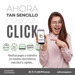 De manera sencilla pueden realizar su pago a través de la aplicación móvil “SLP Finanzas”, el Sitio web slpfinanzas.gob.mx, 16 Centros Electrónicos ubicados en plazas comerciales, oficinas y presidencias municipales, así como en sucursales bancarias.