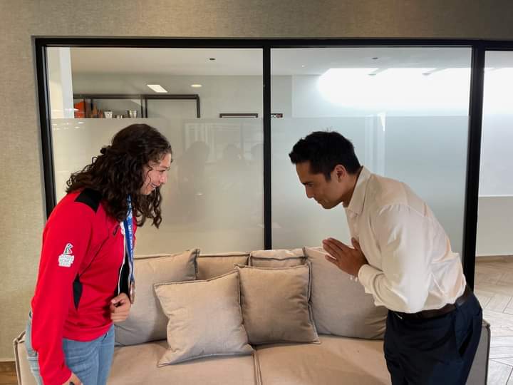 “Estoy muy contenta por haber logrado esta medalla de bronce, estuvimos en Venecia en el mundial de la especialidad, contenta de regresar con Ricardo a mostrarle la presea, agradecida por todo su apoyo, me ha hecho lograr muchos de mis sueños, también a Francisco Torres que se sumó al apoyo, ahora mismo estamos en recuperación, deseamos lo más pronto regresar a entrenar y seguir haciendo historia en mi especialidad que es el karate Do.” Comentó Valeria.